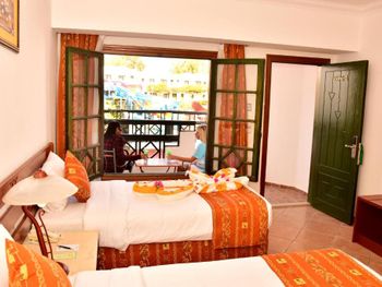 Хороший отель за свои деньги. Отличное сочетание цена-качество. Чистый номер, удобные кровати, подушки, одеяла. Постельное не супер-новое, но без дыр/пятен ) Кондишн работает, сантехника тоже ок. В целом с номером не было проблем. Чисто-опрятно-аккуратно. На заселении ничего не платили. Администратор Mohammed Ibrahim был весьма приветлив и любезен с нами! :) Питание без изысков, но и мясо, и курица, и рыба-всегда в наличии. Напитки - пиво, лимонады, чай-кофе и соки а-ля юппи. По пляжам - возят несколько раз в день, 2 пляжа: бесплатный песчаный Paradise beach в бухте в старом городе и на платный (3$) коралловый Palm Beach в восточной части Хадабы, рядом с пляжом отеля Рениссанс.
