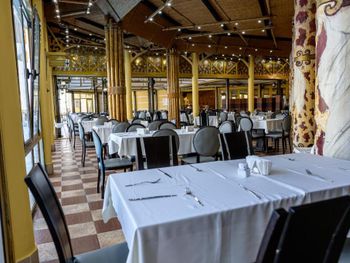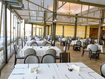 Очередь в ресторане и Очень липкие столы,официанты выбирали столы с той же тряпкой по 10 столов.Ужасно грязные столы.Не рекомендую.
