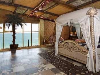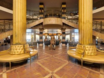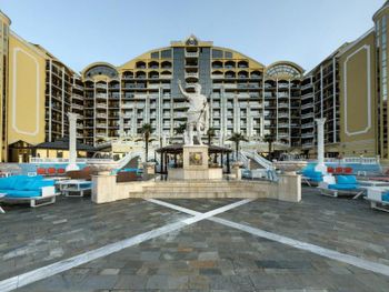 нет кондиционеров в холле, коридорах, ресторанах и барах внутри гостиницы. В ресторане HOLLYWOOD из-за жары вообще невозможно находиться, это основной ресторан, где проходят завтрак, обед и ужин. Еда однообразная на протяжении всей недели, что мы там находились, так что больше 3-х дней там нет смысла останавливаться. Размещение тоже желает быть лучше и внимательнее, я заказывал номер с видом на море, а получил с видом на стоянку и главный вход в гостиницу. Кондиционеры в комнатах тоже работают очень слабо, при самой минимальной температуре на пульте управления кондиционером и максимальной скорости вентилятора почти не ощущалось охлаждение в комнате.