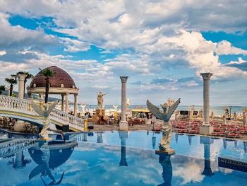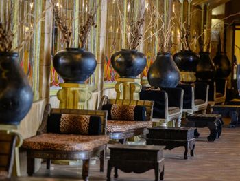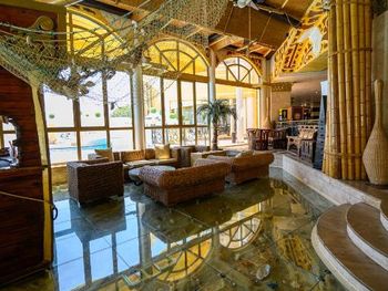 Отдыхали с подругой в сентябре. Очень понравился дизайн отеля. Любители объектов с историей оценят атмосферу. Мы наслаждались деталями обстановки. Были смешаны стили - немного отголосков Римской империи (статуи, детали декора), в коридорах были размещены картины, пано, маски. Явно привезенные из Индонезии. Использовался бамбук огромных размеров для отделки, сундуки резные, плетеная мебель🥰. В общем, мы наслаждались атмосферой, так как любим искусство и отели с характером.