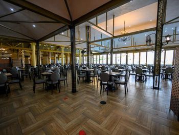 Запах в номере канализации или вентиляции (особенно по ночам), а также звук - это не включая кондиционер, который гудит по своему громко. В отеле не знают в 2025 году, что такое Bed bridge/ Mattress bridge (накладки на кровать, чтобы при соединении кроватей полуторных не было дырки, в номере, где жили родители вообще одна выше, а другая ниже кровати. Ковролин весь в пятнах, его давно никто не чистил. При выборе одного и того же номера с видом на море, будьте готовы, что размеры балконов будут по размеру значительно разными (нам посчастливилось и у нас был большой, просторный балкон, а у родителей за такую же цену значительно меньший. Ресторан и еда это вообще болезненная тема: еда однообразная, постоянно одно и тоже (если говорить о мясе, то может меняться окрас блюда или его форма, объясню на одном из примеров примеров, например, люля кебаб, на следующий день превращается в форму котлеты, рецепт остается тот же. О рыбе или морепродуктах на море с первой линией отеля вообще можете забыть, бывают праздничные дни по воскресеньям и четвергам, один вид рыбы, но если вы прийдете за час закрытия ресторана, то рыбы вам не достанется (не за 15 доже за 30 минут до закрытия ресторана, а за 1 час работы ресторана). Можете насладится соленой салакой, которая по затратам ресторана особо дорого не стоит и ее практически никто не ест. Столы липкие и грязные, чистят со столов официанты на пол, но чаще всего ты сам, когда отвоюеш или выбьешь себе стол, в прямом смысле этого слова, то это не проблема для тебя уже грязный стол (сам можешь вытереть, главное у тебя есть стол). При входе в ресторан вас будет ожидать менеджер, которая может вас провести взглядом без улыбки, останешься ощущение, что на входе стоит не улыбчивый, приятный менеджер, а вышибало в каком-то клубе.