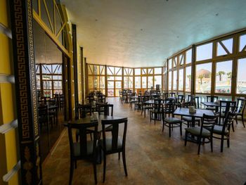Зеленые бассейны. Везде таблички с правилами и штраф за все 100 лева. Даже в номере, этаже, ресепшене, стенах - прайс лист с штрафами. Еда - никакого разнообразия, никаких морепродуктов, фрукты 3 вида, сладости или пусто или 5 видов и брать самому нельзя, только по 2 кусочка на человека. Кафе и чай не всегда есть вечером. Утром возле бассейна грязно, не убирают или через раз. На пляже шезлонги и зонты платные от отеля. Оказывается есть номера без открывающихся окон - это как? Как проветриваются они 10+ лет?!