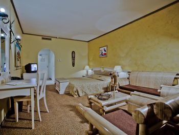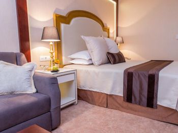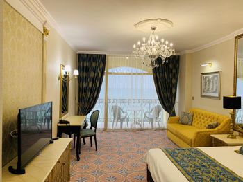 Air conditioning and cable TV are available in every room. All rooms have a sofa. Most have views of the Black Sea.