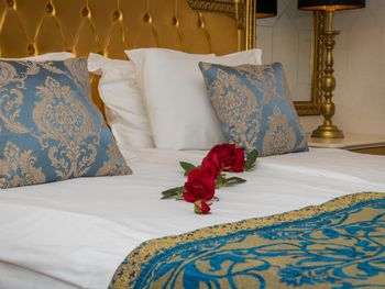 Не убирали номер( уборка была в виде выноски мусора и прикрытия одеялами кроватей, даже простыни не натягивали, которые выбились, и немудрено, что выбиваются! Ведь стелят на кровать Кинг две простыни по пол кровати(((