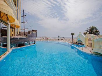 Расположение гостиницы отличное, выход на море очень удобный, всего несколько шагов от бассейна и ты уже в море. Обслуживание в барах замечательное. Обслуживающий персонал всегда приветлив и улыбчив, очень хорошо выполняли свои обязанности. Сама гостиница очень красивая, как снаружи, так и изнутри. Все сделано очень оригинально под старинный замок. Гостинице не дал бы больше чем 4 звезды