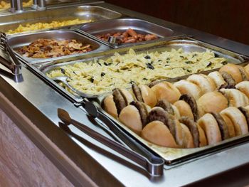 Огромные очереди в столовой, нет мест, всё заканчивается и больше не приносят, персонал в столовой работает, но нет управления их работой, все на самотёк. За кофе с утра вообще не пробиться. Вообще так себе приключение сходить покушать.