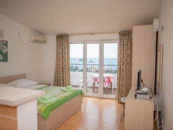 Очень понравились хозяева, такие позитивные и отзывчивые. У меня аллергия на перьевые подушки, сначала в номере были они, но потом по моей просьбе без проблем поменяли на другие. Уборка номера хорошая. Терраса с видом на море тоже очень понравилась. На кухне есть все для приготовления пищи. Кондиционер установлен так что не дует на кровать и тем самым не может продуть. Очень тихо и спокойно.3 пляжа расположены от 10-25 минут. Тут как в сказке три пляжа прямо, направо и налево. Если пойдете на пляж направо то будете проходить по тропе здоровья с которой открываются потрясающие виды. Слева от вас будет море, справа сосны. Потом пройдете по туннелям и попадете на пляж где менее многолюдно. Если идти от гостиницы налево то попадете на пляж "Лучице", там будет интересно покупаться с маской, можно увидеть осьминогов, морских ежей и разноцветных рыбок. Ну и если идти направо то попадете на пляж вдоль которого расположены кафе, магазины и рестораны. Вода везде прозрачная, чистая.