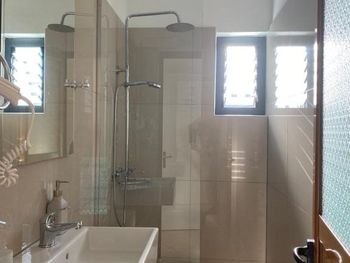 Оставались на одну ночь. Номер небольшой, но комфортный и светлый. Вся мебель новая, везде чисто и опрятно. Хозяева виллы очень гостеприимные и дружелюбные, отдельное спасибо за подарок - бутылку вина на день рождения мужа, а также за вкусный кофе утром. Местоположение очень удобное в центре, везде можно дойти пешком. Супермаркет в 5 минутах.