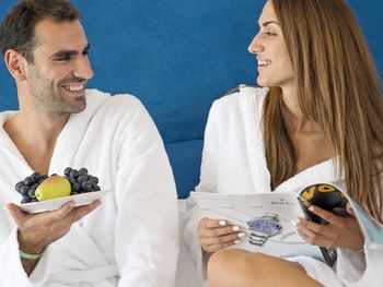 An outdoor swimming pool, a sauna and a children's' swimming pool are also at guests disposal.