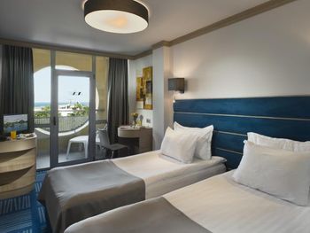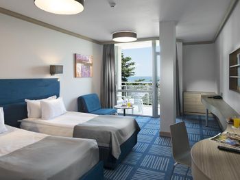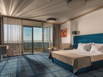 Дали бесплатно номер вместо обычного двухместного супериор на последнем этаже с видом на море, красивая территория, вежливый и очень хороший персонал, ребенку делали без проблем отдельно еду в ресторане общем по нашей просьбе если чего то не было, чисто, уютно, симпатично