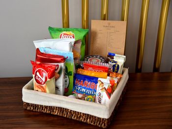 1. В номере: кофемашина, чайник, холодильник (холодильник грязный и плохо морозит, это к минусу), комплимент: две бутылки воды по 0.5 каждый день
