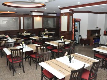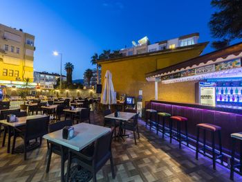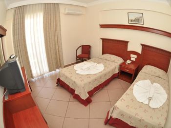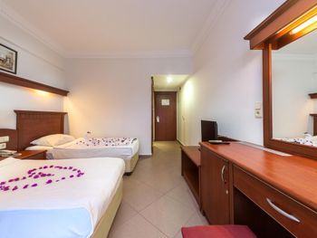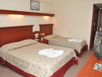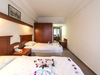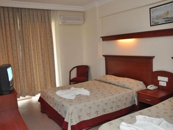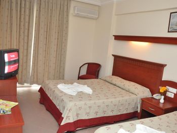 Пакет "Всё включено". Нет такого разнообразия еды как в былые годы, но всё вполне достойно. Из бесплатных напитков: пиво (кстати не разбавленное), местное вино (если не попробуете- ничего не потеряете), кола-фанта-спрайт, ну и откровенно химические напитки из аппарата. В общем стандартный набор. В отличие от отелей в туристической зоне Алании, здесь никаких проблем с водой. Включаешь горячую воду- течёт горячая, включаешь холодную- течёт холодная. Расположение отличное, до пляжа 5 минут пешком. В непосредственной близости Migros, рядом центральная улица Ататюрка, на которой сконцентрированы все торговые центры. В номерах всё работает, нет ничего сломанного, мебель относительно новая.
