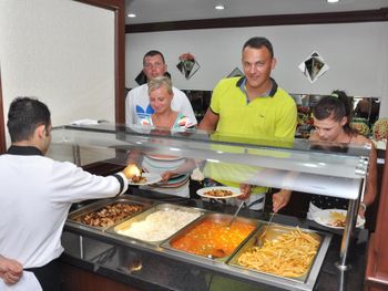 Так как мой отдых пришёлся на период короновируса и выдача блюд была исключительно работниками кухни (именно кухни, а не отеля), то поведение этих турецких девушек на раздаче питания меня повергло в шок. Во-первых они не накладывали в тарелку, а буквально наваливали горой одно блюдо на другое, я высказала своё недоумение.Мне это напомнило советскую столовку. И вели себя мягко говоря не культурно. Одна девушка позволяла себе кричать на турецком что-то на меня. После этого мне наклалывал сам шеф ресторана. Кроме того неоднократно подавали не свежие блюда и даже порченные. Курицу надо было уметь так ужасно готовить - хуже подошвы . Экономили на питании как могли. Однажды я попросила на завтрак три порционных масла, так эта турецкая девушка начала на меня громко кричать и дала одно (типа у неё указание есть по многу не давать). Питание в отеле какой то квест. Качеству и вкусности питания могу поставить твердую двойку. Другой обслуживающий персонал официанты и бармены были очень вежливые, работящие и культурные.