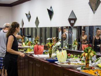 Еда очень однообразная и не вкусная. Были там двое суток, и то ждали отъезда с нетерпением. Платный интернет 2 доллара в сутки. Воду питьевую не давали в номер. Пироженые нарезают 2 квадратных сантиметра площадью)) Столы вовремя не протирают, довольно грязно.