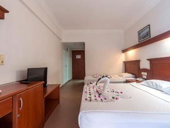 нормальный отель в отличном месте, рядом пляж Клеопатра, канатная дорога, аквапарк, кафе и магазины. Кормят и поят нормально, бассейн не большой но чистый. в номере тоже чисто и красиво, есть балкончик. есть свой пляж