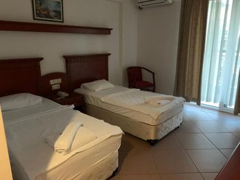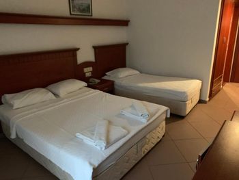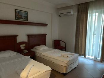 Пакет "Всё включено". Нет такого разнообразия еды как в былые годы, но всё вполне достойно. Из бесплатных напитков: пиво (кстати не разбавленное), местное вино (если не попробуете- ничего не потеряете), кола-фанта-спрайт, ну и откровенно химические напитки из аппарата. В общем стандартный набор. В отличие от отелей в туристической зоне Алании, здесь никаких проблем с водой. Включаешь горячую воду- течёт горячая, включаешь холодную- течёт холодная. Расположение отличное, до пляжа 5 минут пешком. В непосредственной близости Migros, рядом центральная улица Ататюрка, на которой сконцентрированы все торговые центры. В номерах всё работает, нет ничего сломанного, мебель относительно новая.