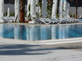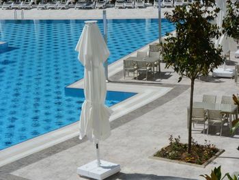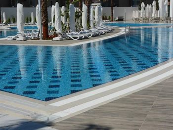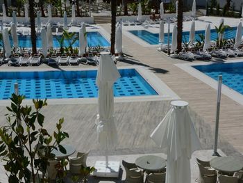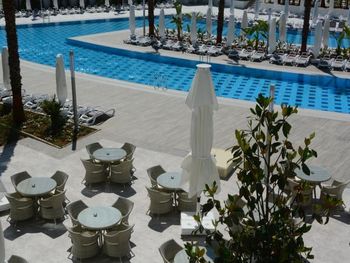 Бассейн есть, большой, много шезлонгов, мы предпочитали пляж. На пляже есть и зонты и навесы - кому что нравится. Жаль, что душ на пляже далеко от моря, приходилось использовать душ Рамады (это если вы привыкли смывать с себя соленую воду).
