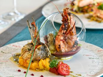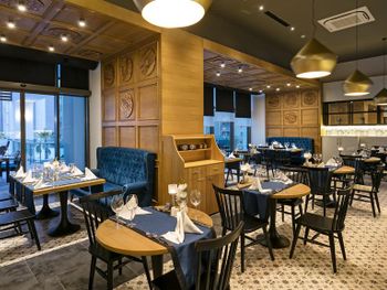Ежедневно в ресторане подают завтрак, обед и ужин. В баре предлагают различные напитки.