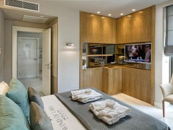 Во всех номерах установлены телевизоры с плоским экраном. Из некоторых окон видно море или горы. Предоставляются халаты, тапочки и бесплатные туалетно-косметические принадлежности.