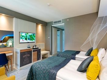 Отличный отель) была интересная развлекательная программа. Вкусная и разнообразная еду, приветливый персонал. Во всех номерах одна двухспальная кровать и одна односпальная.