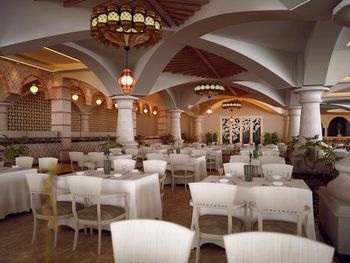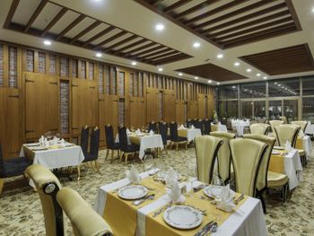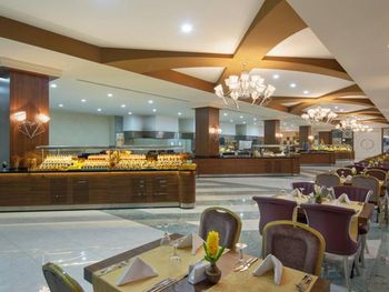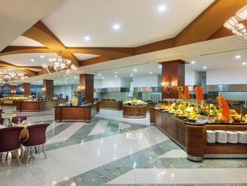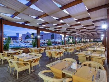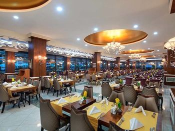 В главном ресторане с крытой и открытой обеденной зоной сервируют на завтрак, обед и ужин изысканные блюда турецкой и интернациональной кухни в виде «шведского стола». В ресторанах с обслуживанием по меню подают блюда турецкой, дальневосточной и итальянской кухни. Различные напитки можно заказать в барах.
