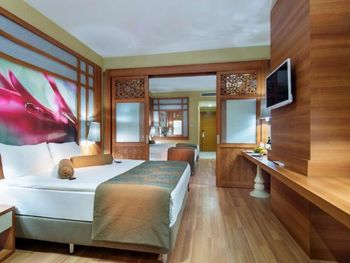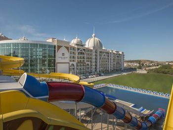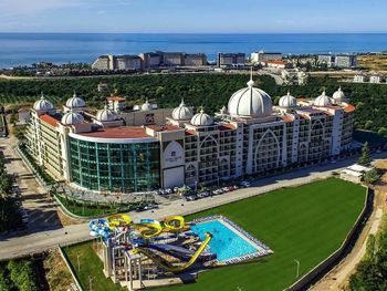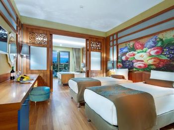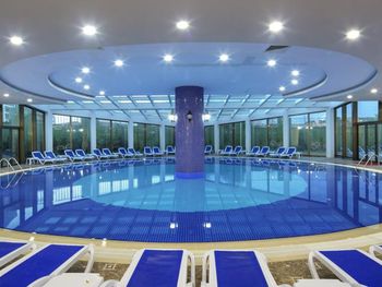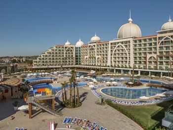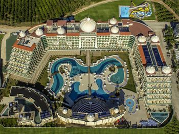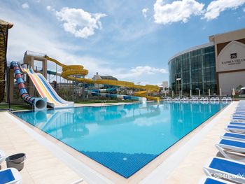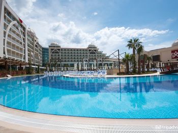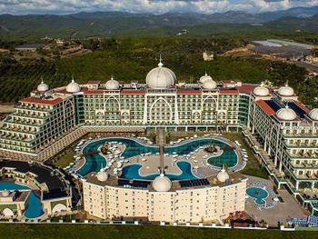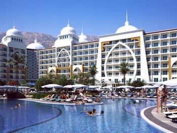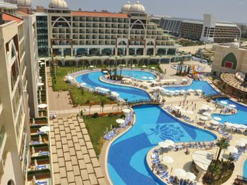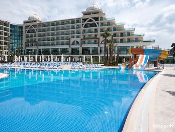 Элитная 5-ка, очень сильно потерявшая в классе. Отель строился по высшей категории, но похоже в какой-то момент владельцы на него забили или там сменились хозяева. Интерьер отеля грандиозен, архитектурные решения изысканны. На этом плюсы заканчиваются. Еда очень средненько, можете остаться голодными. Анимации нету как таковой. Пляж, ну наверное такой же как в Геленджике. А вот бассейн и горки отличные. А ну еще по концепции включены бесплатные хаммам/сауна и коктейли. Что несколько скрашивает впечатления.