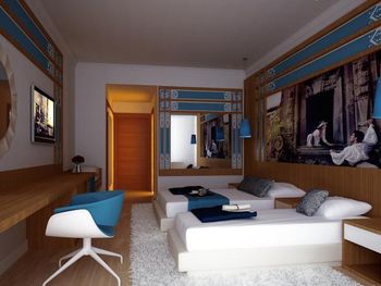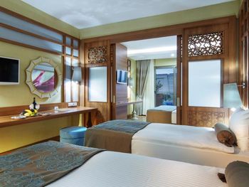 Современно обставленные номера курортного спа-отеля Xafira Deluxe оснащены телевизором с плоским экраном, кондиционером и мини-баром. В некоторых номерах есть собственный бассейн.