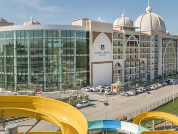 Курортный спа-отель Xafira Deluxe находится в районе Авсаллар. К услугам гостей частный пляж, расположенный всего в 500 метрах от отеля. На территории этого курортного отеля, построенного в виде дворца, есть открытый и крытый бассейны, фитнес-центр, теннисный корт и спа-центр. В местах общего пользования работает бесплатный Wi-Fi. Также имеются водные горки.