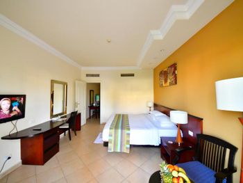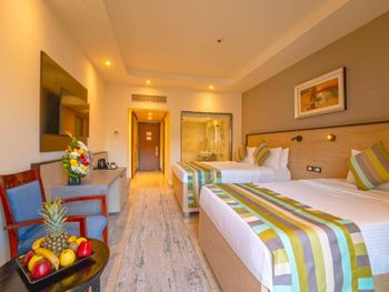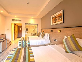 Красиво, приятно, очень вкусно. Отдыхали с детьми 7 ночей. Приветливый, дружелюбный персонал. Номер просторный, светлый, чистый с балконом, кондиционером и всем необходимым: чайник, холодильник, чай, кофе, фен, тапочки, зубные щётки, станки для бритья, бутелированная вода ежедневно. Прикольные горки в аквапарке. Ухоженный, яркий ландшафт. Удобное местоположение и шаговая доступность основных локаций очень порадовали. Во дворике корпуса с нашим номером был небольшой тихий бассейн с баром - когда устанешь от движа и шума аквапарка, самое то для релакса. Питание бесподобное и такое ощущение, что бесконечное. Получили как гастрономическое, так и эстетическое наслаждение. Отдельная благодарность Мадонне и Жанне, кто со знанием дела и очень сердечно помогал и подсказывал возможности и решения текущих вопросов. Получили комплимент от отеля за длительное проживание - ужин в ресторане. Мы выбрали индийскую кухню. Все было очень хорошо. Слишком хорошо. Уезжать не хотелось. Пусть вам будет также хорошо, как и нам.