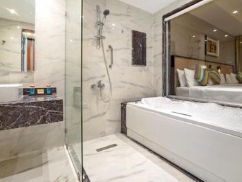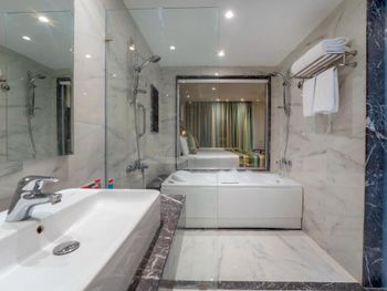 Наш номер был обновленным и очень красивым! Превзошел мои ожидания! Аквапарк и сотрудники у аквапарка отличные! Еда вкусная и разнообразная. Спасибо!