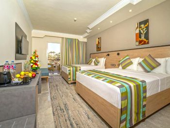 Мы ездили дикарём, нет лояльности к самостоятельным туристам, во время чекаута срезали браслеты, отказались даже везти на пляж (понятно что все услуги отеля платные), но банально отвезти отказались, "такие правила, такая система". Поэтому время до вылета проводили в бассейнах и аквапарке (почему тогда пустили сюда - не понятно). Территория видимо не убирается совсем, возможно из за размеров, но факт, разводы, плевки, мелочь но заметная. Столовая и еда это отдельная тема. Очень много мух, такое ощущение что рядом городская свалка, каждую минуту отмахиваешь их с себя и с еды Еды очень много, но в основном мешанина, салаты какие-то, закуски. Мяса было немного (но есть блюда в составе которых мясо), много гарниров но все какое-то безвкусное. Голодным не уйдешь но и не сказать что покушаешь душевно. На пятерку отель точно не тянет, максимум четверка. Для семейного отдыха более чем подойдёт, но если вы едете за комфортом, то на вкус и цвет...) Но мухи, они выбешивают, они везде, в столовой, на пляже, везде.. P.S. до этого были в четверке и вот она по качеству оказалась на 5+ звёзд по всем параметрам, кухня, персонал, территория, еда.